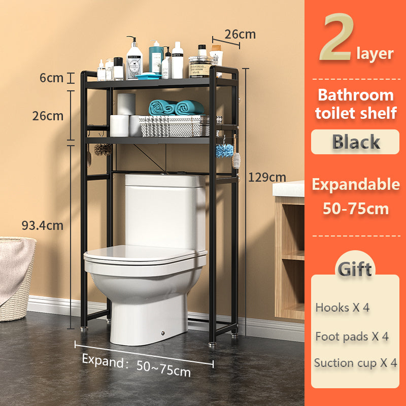 ODOROKU 1/2/3 Tier Extendable Washing Machine Toilet Storage Rack Over-The-Toilet Cabinet Bathroom Organizer Bathroom Space Saver with Multi-Functional Shelves Black White