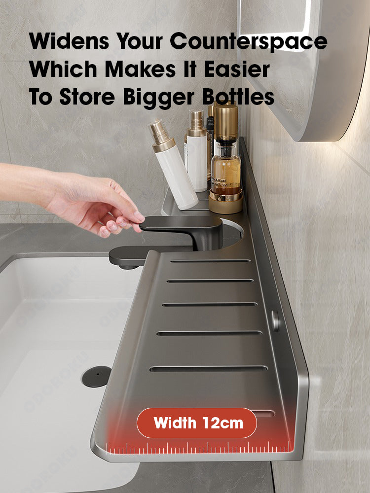 Maximize your space and organize your bathroom or kitchen with the ODOROKU Aluminum Wall Mounted Basin Storage Rack. This sleek and durable shelf offers a modern solution to enhance your sink area while keeping essentials neatly organized and accessible.