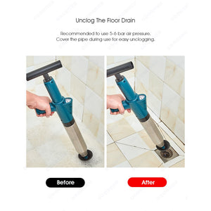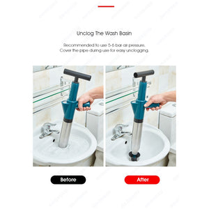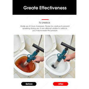 [Effortlessly Unclog Tough Clog] This Toilet Plunger uses high-pressure compressed air (max. 120 PSI/8 Bar) to blast through even the most stubborn clogs in seconds, providing a quicker and easier alternative to traditional tools like toilet snakes or augers.