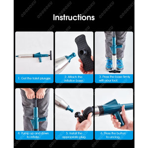 ODOROKU High Pressure Toilet Pump Air Blaster Toilet Plunger Unclogging Toilets, Drains, Sinks, Stainless Steel