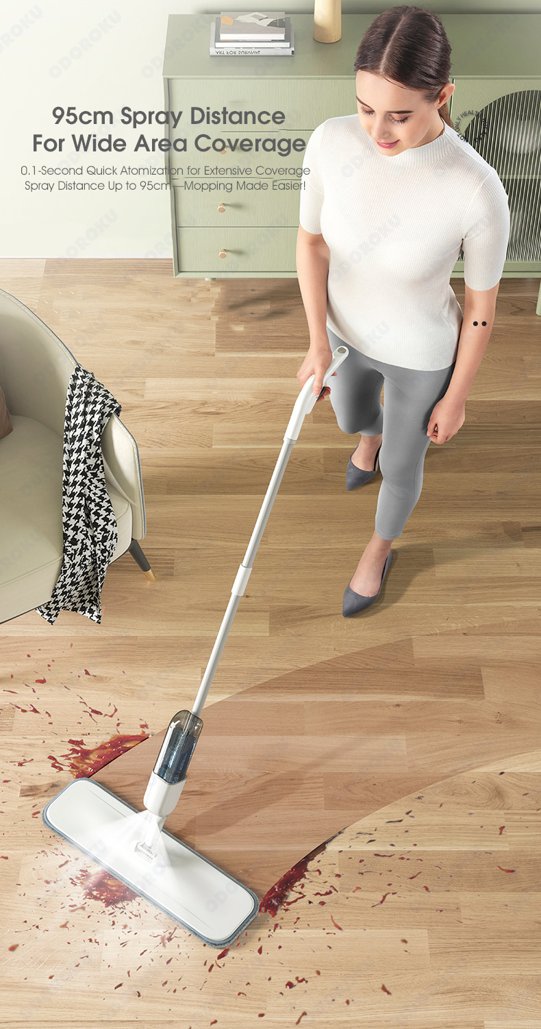 Effortless Cleaning Experience – Say goodbye to heavy, messy buckets! This spray mop allows for a seamless cleaning experience with its easy-to-use spray trigger, providing a fine mist for effective floor cleaning.