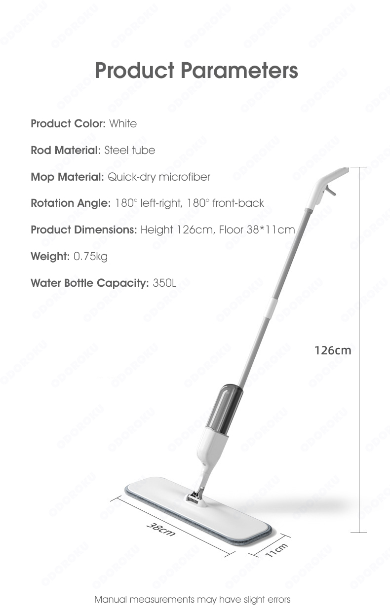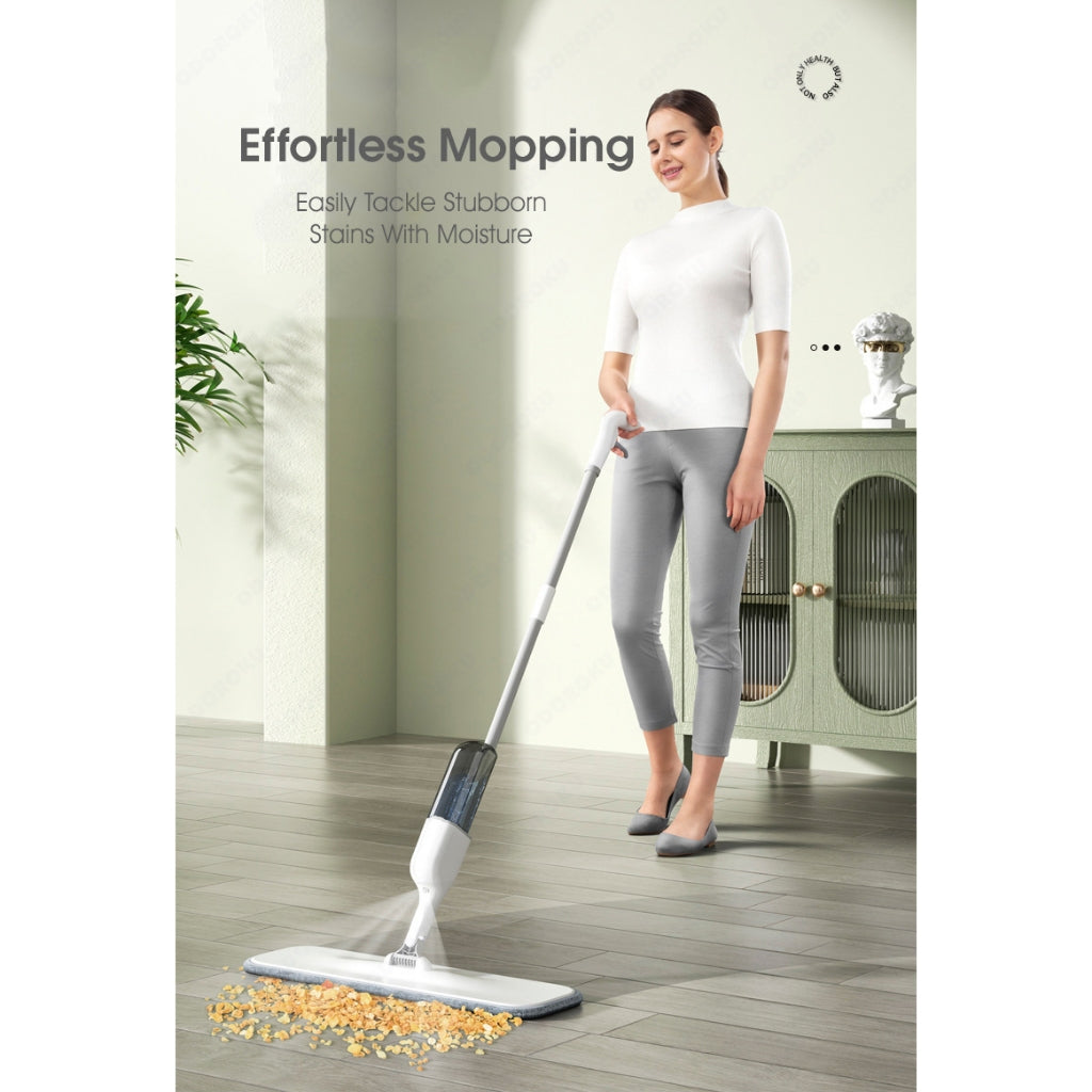 ODOROKU Wet & Dry Water Spray Mop Floor Cleaning Kit with Refillable 350ml Spray Bottle and Washable Microfiber Brush