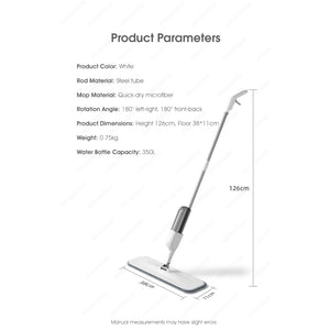Whats Included: 1 x Spray Mop, 1 x Water tank, 1 x Dirt removal brush, 1 x Microfiber cleaning pad