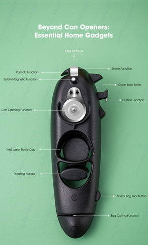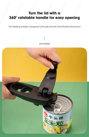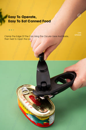This ODOROKU 10 in 1 Stainless Steel Precision Blade Can Opener is designed for durability and convenience, featuring sharp, stainless steel blades that stay sharp over time for effortless can opening. Its 360-degree rotating handle allows for quick, easy opening of round, oval, or square cans without the frustration of stubborn lids. The precision cutting creates smooth edges, reducing the risk of injury and allowing cans to be resealed to maintain freshness. Equipped with versatile functions like a pull-tab opener, bottle opener, and snack bag cutter, this compact tool saves space in the kitchen while being perfect for both indoor use and outdoor activities like camping and hiking.