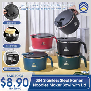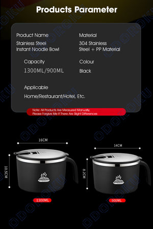 Upgrade your meal preparation with the ODOROKU 304 Stainless Steel Ramen Noodles Maker Bowl. Designed for busy individuals, this bowl is the ultimate tool for hassle-free cooking and reheating, offering a perfect blend of functionality, style, and safety. Its spacious 1350ml capacity is ideal for hearty servings, making it a must-have for students, professionals, and families.