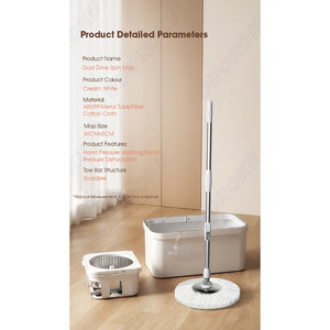 Hands-Free Washing and Drying: With its dual-drive elution system and labor-saving hydraulic lever, you can wash and dry the mop head effortlessly in seconds. Just press lightly for hassle-free cleaning.