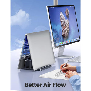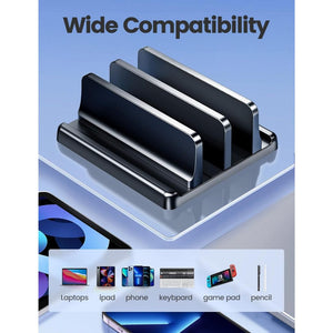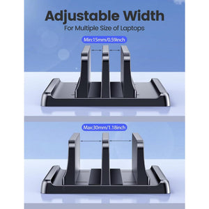 ADJUSTABLE WIDTH: With adjustable width, this vertical laptop holder is compatible with various laptops and notebooks ranging from 0.59 inch to 0.94 inch in thickness between each slots, ensuring a secure fit for your device!