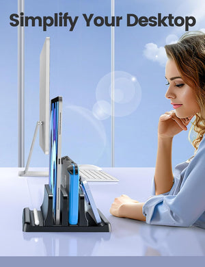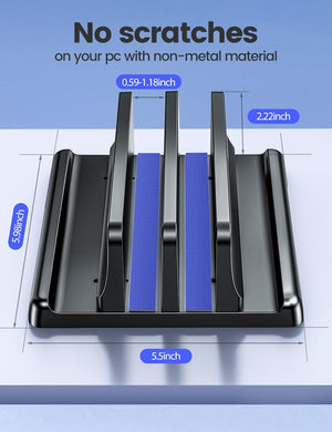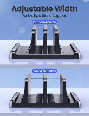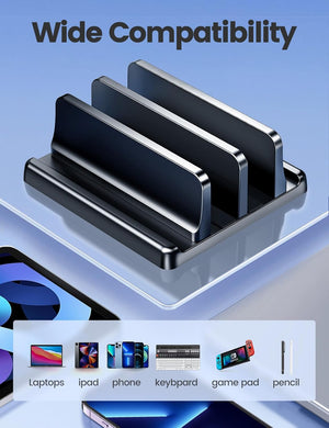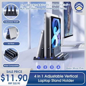 Upgrade your desk setup with the ODOROKU 4-in-1 Adjustable Vertical Laptop Stand Holder, designed for maximum functionality and elegance. With its dual or triple slot design, this versatile stand keeps your laptops, tablets, and devices organized while freeing up valuable desk space.