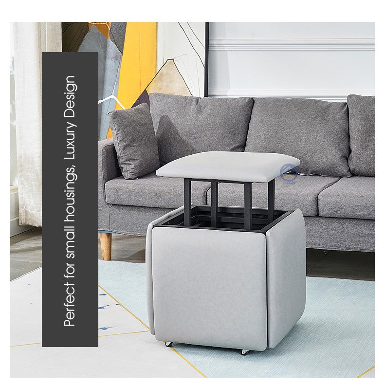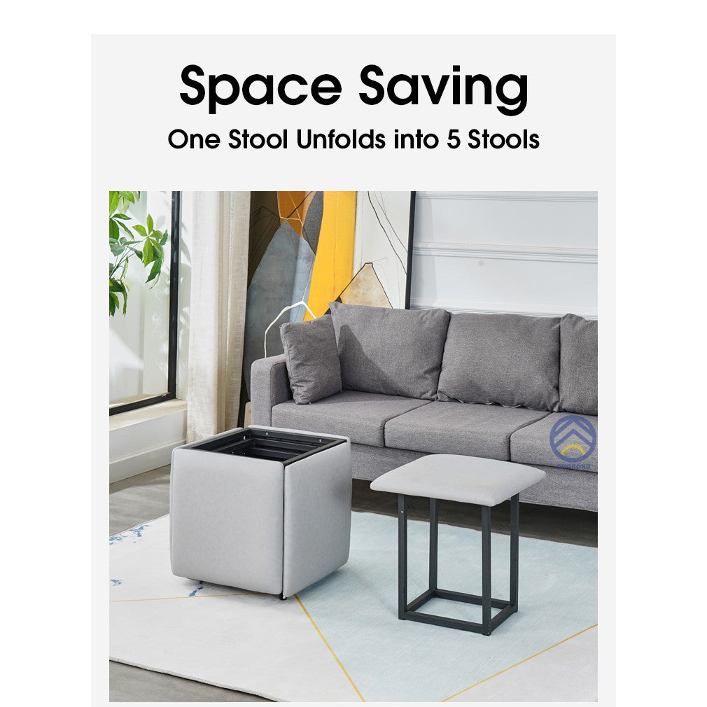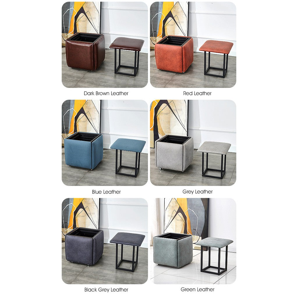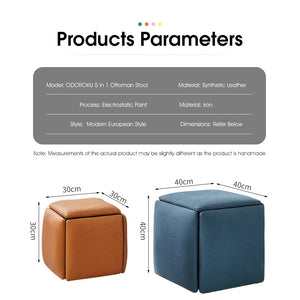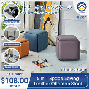 What's Included: 1 x ODOROKU 5 In 1 Leather Ottoman Stool with Wheels