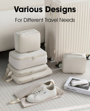 The ODOROKU 6-Piece Travel Organizer Set is crafted from premium, lightweight, and water-repellent memory fabric that is wrinkle-resistant, odor-free, and durable for long-term use. Featuring a space-saving compression design, it helps you pack more efficiently by reducing volume by up to 40%, maximizing your luggage space. The set includes six versatile bags designed to organize clothes, shoes, underwear, and other essentials neatly while keeping clean and dirty items separated. With smooth branded zippers and a construction that retains its shape even after continuous use, it ensures convenience and reliability on every trip. Perfect for suitcases, backpacks, or short getaways, this organizer set is the ideal travel companion for keeping your belongings tidy and protected.