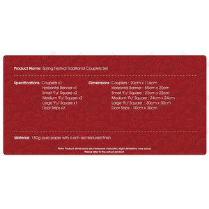 Description: This set symbolizes abundance and harmony with detailed couplets and a central "Fu" square for the main door.