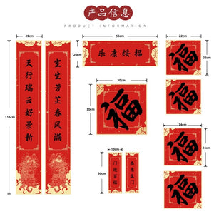 ODOROKU Chinese New Year Wall Decor Couplets CNY Door Sticker Spring Festival Couplet Set Decoration Wall Mounted