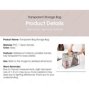 Durable PVC Material – Made from high-quality transparent PVC plastic, this bag ensures long-lasting durability while allowing easy identification of your stored handbags. No need to unzip—just glance and grab!