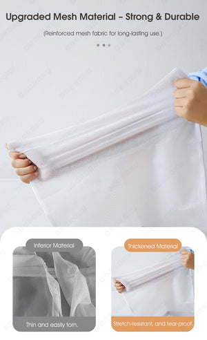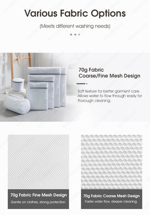 💠 Fine Mesh Laundry Bag ✔ Dense weave with smaller holes for extra protection. ✔ Ideal for lingerie, silk, lace, and other delicate fabrics. ✔ Provides gentle washing by limiting friction and snagging.