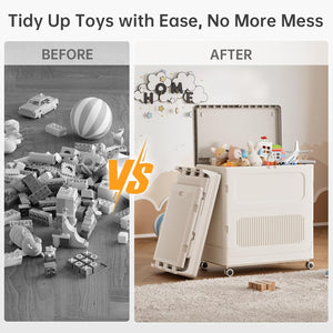 The ODOROKU Foldable Flip Top Storage Box is the perfect solution to keep your space neat and organized. With a generous 157L capacity, this sturdy and durable storage box can hold everything from toys, clothes, and blankets to sports gear and garden tools. Designed for convenience, it folds flat when not in use and assembles easily without tools. Equipped with 360° universal wheels and a lockable lid, it’s easy to move and keeps your items secure, dust-free, and protected.