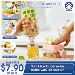 首页 ODOROKU Ice Cube Bottle 2 in 1 Zero Touch Press Ice Cube Mold Water Bottle with Lid and Bin, Ice Bottle Cup, Easy Press to Release Vertical Ice Cube Tray with Lid for Freezer