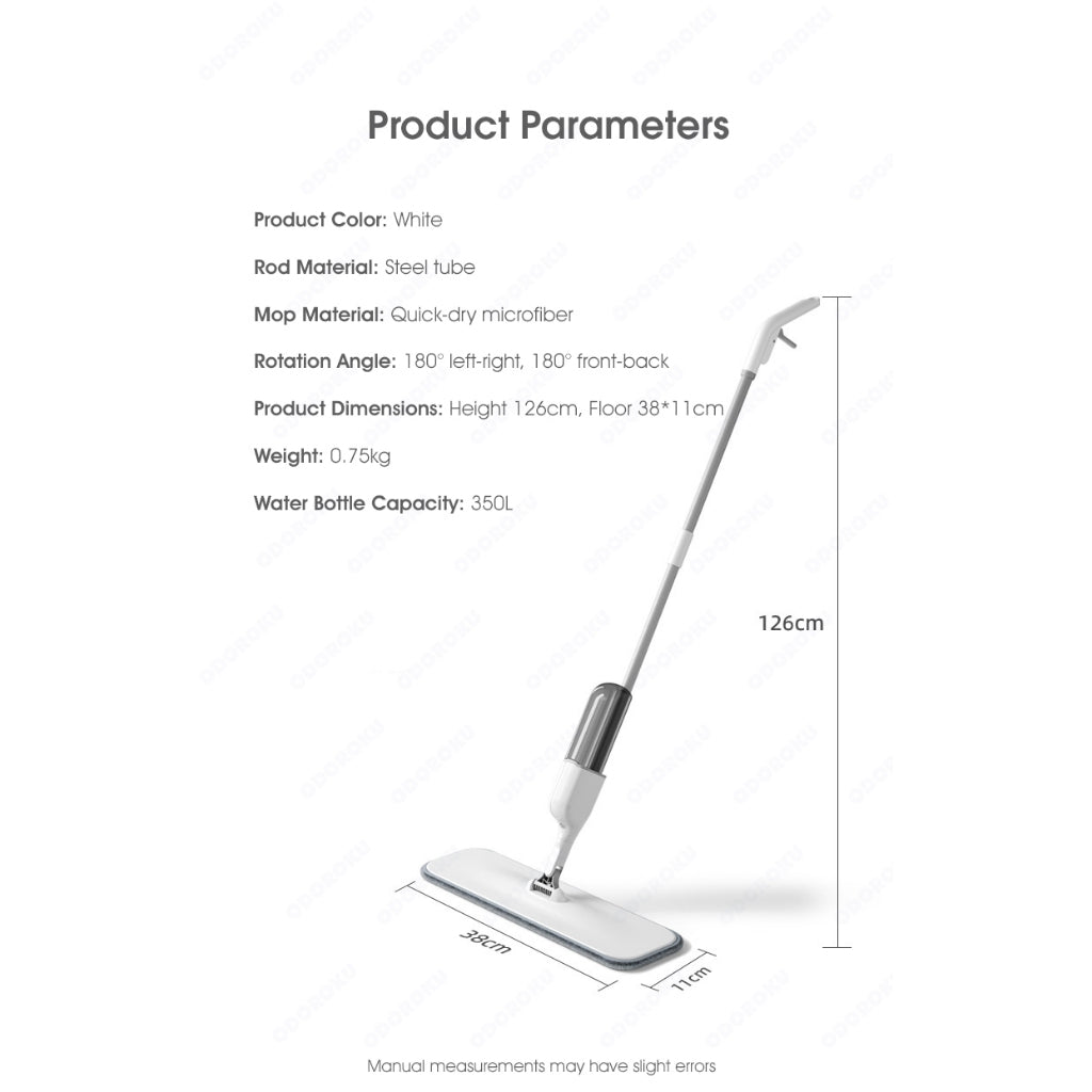Whats Included: 1 x Spray Mop, 1 x Water tank, 1 x Dirt removal brush, 1 x Microfiber cleaning pad