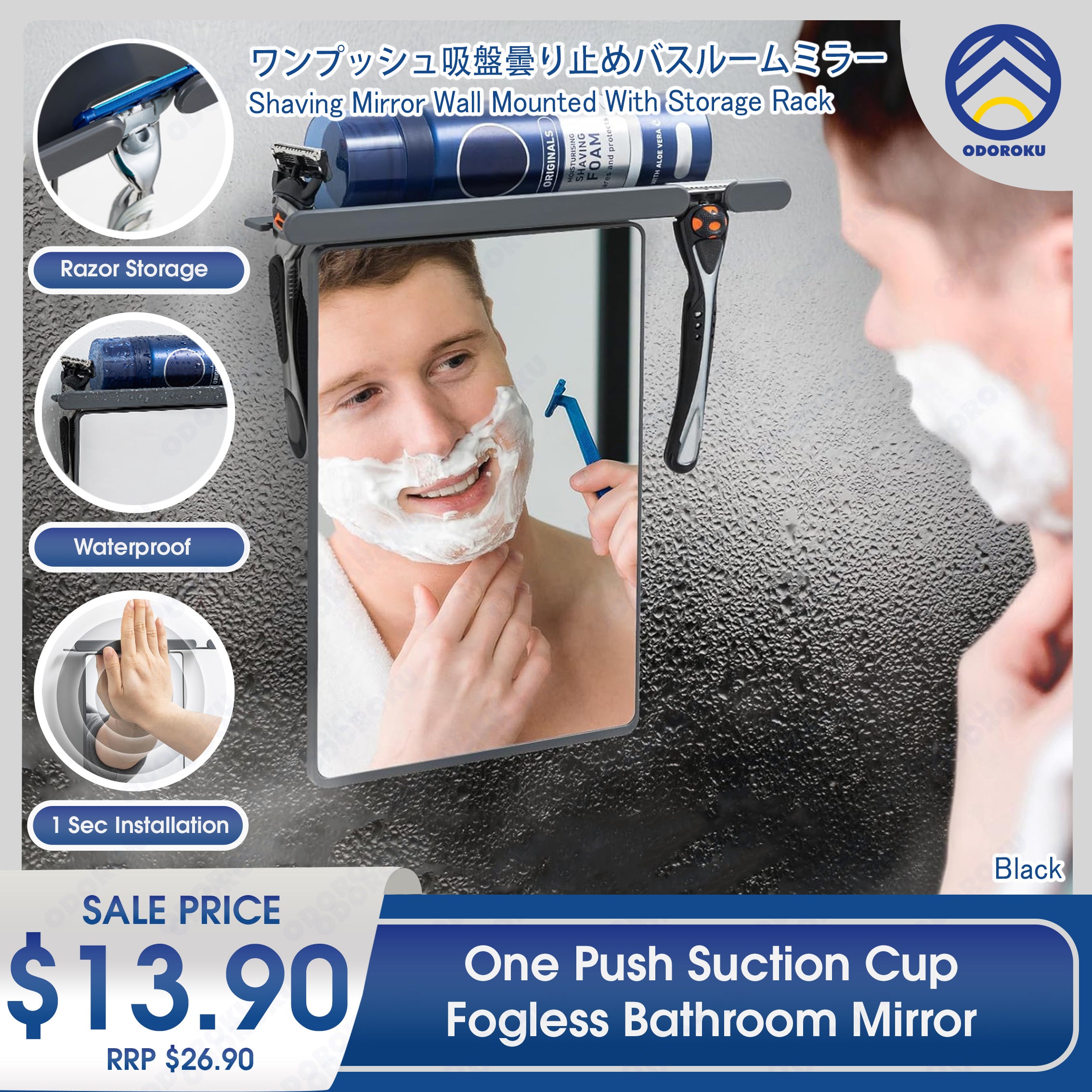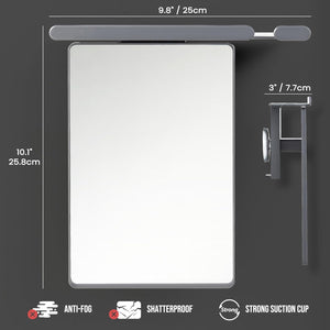 Upgrade your shower experience with the ODOROKU x TAILI One Push Shower Mirror, designed for effortless installation and ultimate convenience. Featuring a powerful vacuum suction cup, this fogless mirror installs in just one second without the need for drilling, screws, or adhesives—perfect for smooth surfaces like glass, tiles, and mirrors. Crafted from durable, shatterproof acrylic, it ensures safety for homes with kids and pets while offering crystal-clear visibility even in steamy showers. With built-in razor holders and a top shelf, this multifunctional mirror helps keep your bathroom organized by storing razors, shaving cream, and other essentials within easy reach. Fully reusable and easily removable without damaging your walls, this mirror is ideal for both permanent bathrooms and temporary setups like rental apartments or travel. Combining sleek design, functional storage, and fog-resistant performance, it’s the perfect bathroom accessory for hassle-free grooming every day.