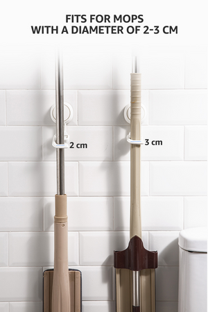 Organize your space effortlessly with the ODOROKU x Taili Suction Cup Mop Holder. Designed with powerful one-push suction technology, it installs in just one second — no glue, no drilling, no mess. The innovative non-slip U-shaped hook grips mop handles tightly and keeps them suspended, preventing falls or tilting. Built with waterproof and mildew-resistant materials, it’s ideal for wet bathrooms, kitchens, or balconies.