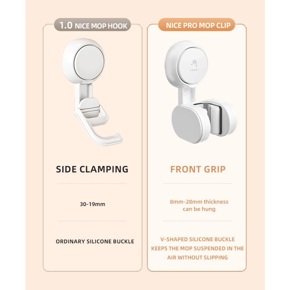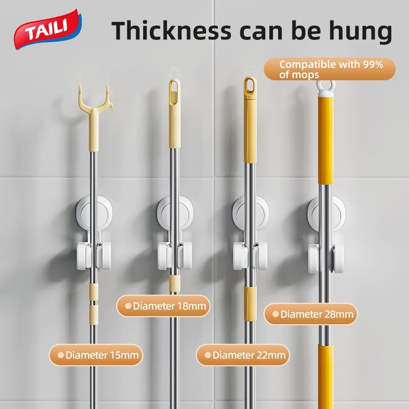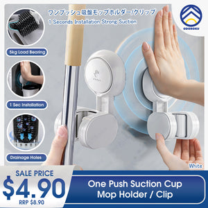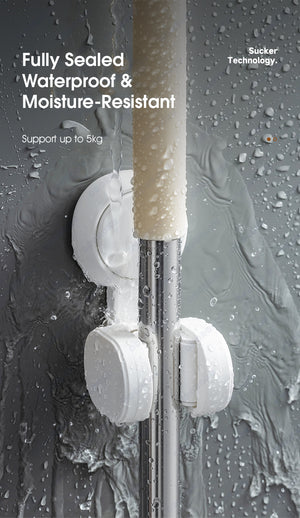 Upgrade your storage game with the ODOROKU x Taili One Push Suction Cup Mop Holder. Built with a patented suction cup system, it installs in just 1 second—no nails, glue, or drilling needed. The U-shaped silicone grip securely holds mop or broom handles from 8mm to 28mm, supporting up to 5KG without slipping. Its fully sealed waterproof design makes it perfect for humid environments, and it's completely reusable—just rinse and reapply. Ideal for bathrooms, kitchens, balconies, and utility rooms. Stylish, practical, and damage-free.